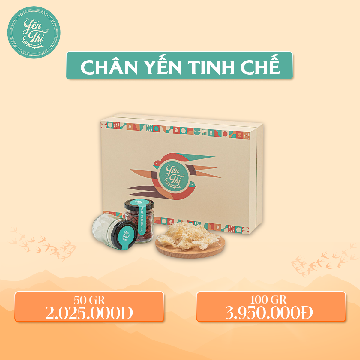 Mô tả sản phẩm: Sản phẩm Chân yến tinh chế là phần rìa 2 bên của tổ chim yến được làm sạch 100% sau khi thu hoạch. Chân yến là sản phẩm có thời gian hình thành lâu hơn tổ yến, cho sợi yến dai và thơm ngon hơn.